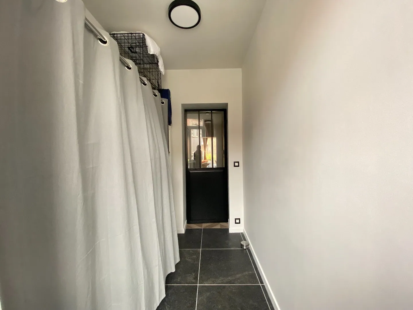 Couloir faisant office d'entrée composé d'un renfoncement prévu pour un vestiaire.
