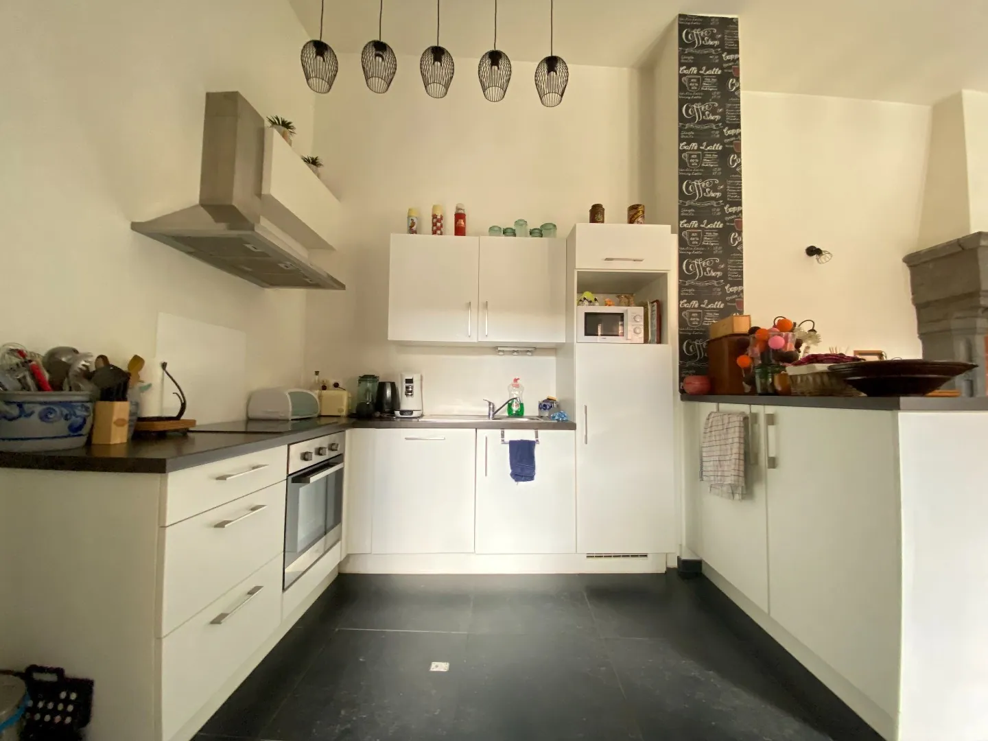 Hall d'entrée, séjour très lumineux comprenant salon et salle à manger, cuisine équipée avec four, taques électrique, hotte, lave-vaisselle, évier et nombreux rangement. Salle de bain avec meuble lavabo, wc suspendu séparé. 2 belles chambres dont une avec un dressing intégré. Une grande cave accessible par la cuisine.