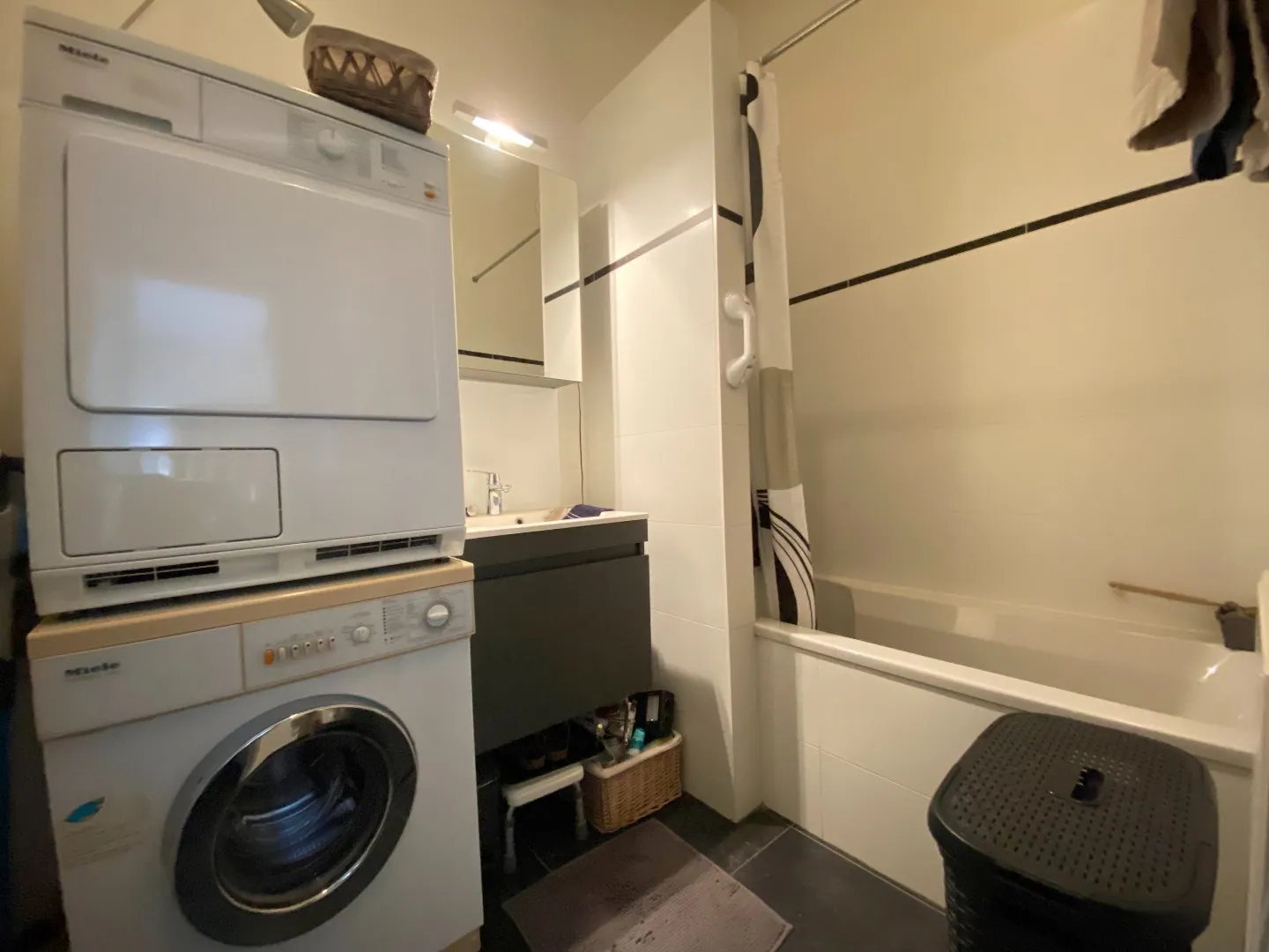 Provisions de charges mensuelles : 120€ pour le chauffage, l'eau et le nettoyage des vitres fixes extérieures de l'appartement, l'entretien et l'électricité des parties communes, le local vélo et le ramassage des déchets (plus besoin d'acheter les sacs poubelles de la ville).