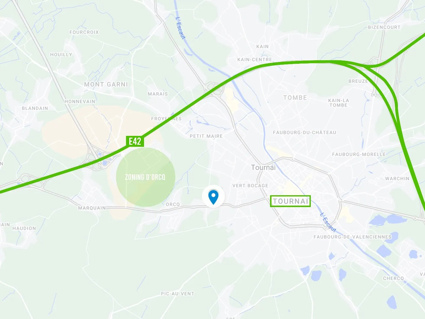 Entre le centre-ville et le zoning d'Orcq/Marquain (2 km), avec un accès direct aux autoroutes.