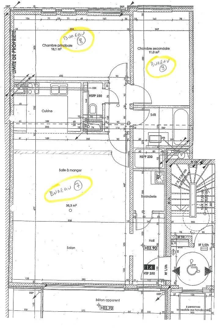 Ces 2 bureaux proposent une surface de +/- 11m² et +/- 30m² avec possibilité de parking couvert (50€/mois, 4 places).