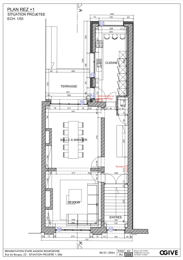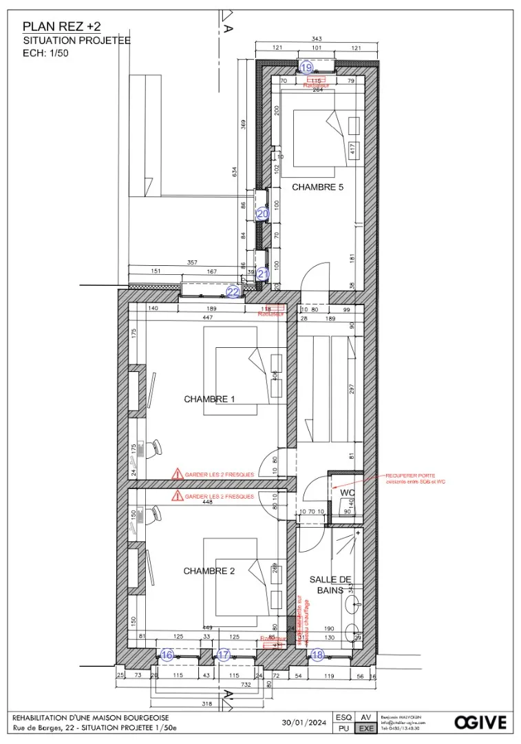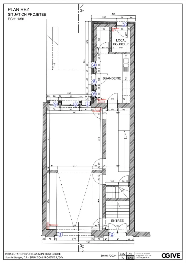 - Châssis DV bois partout à l'exception des vitres au rez-de-chaussée arrière ;