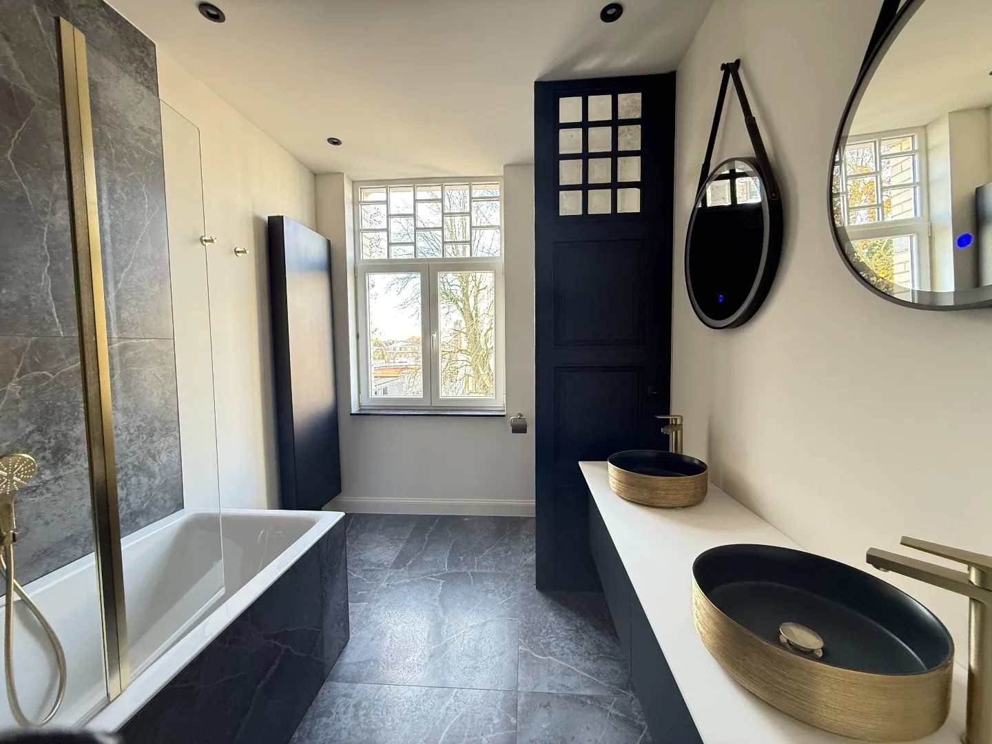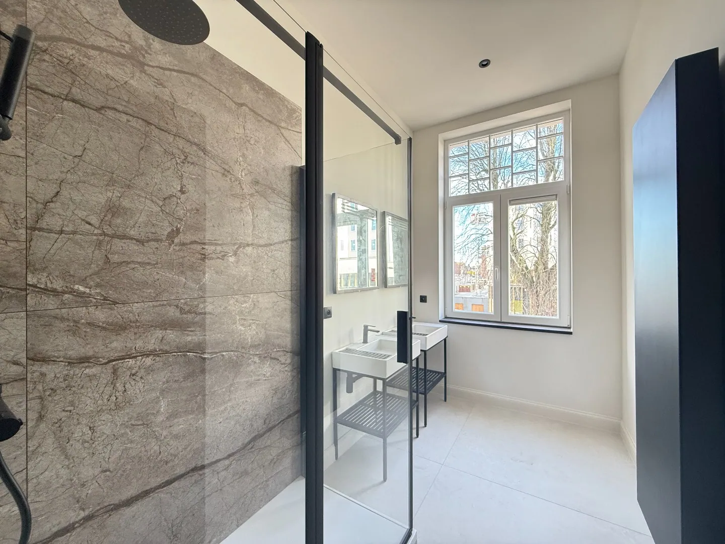 Le second étage comprend 3 belles chambres, un toilette séparé et une salle de douche moderne avec double vasque, rangements, douche à l’italienne et sèche-serviette.