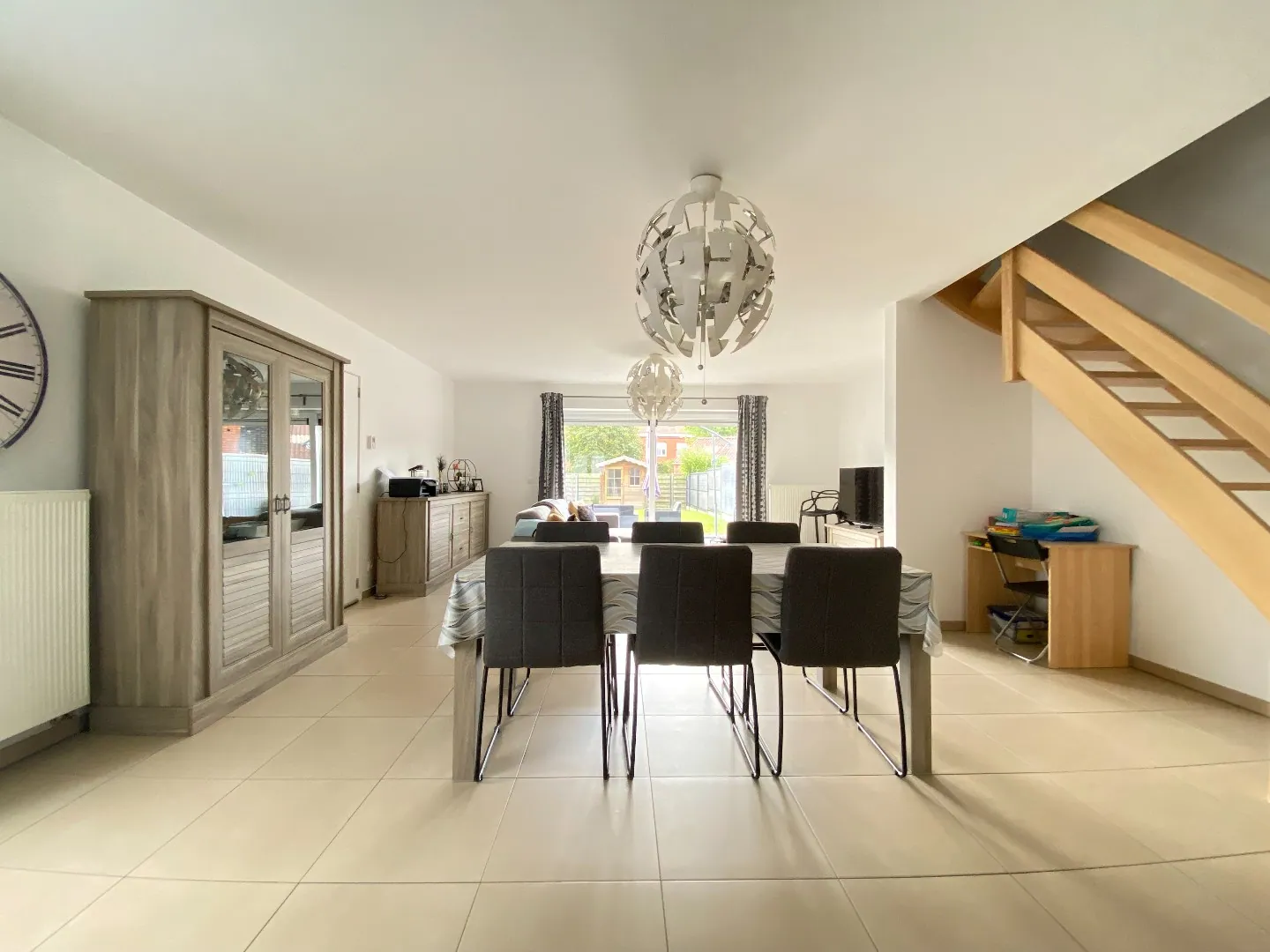 séjour de +/- 30 m² comprenant salon et salle à manger avec baie vitrée donnant sur le jardin,