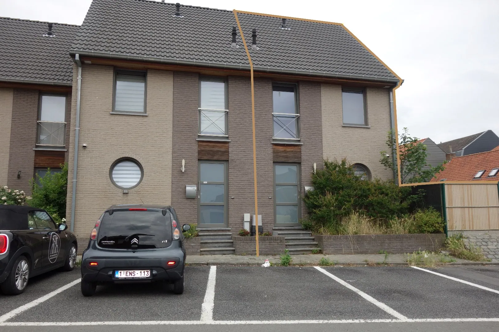 Construction récente 3 façades avec 3 chambres, jardin et garage.