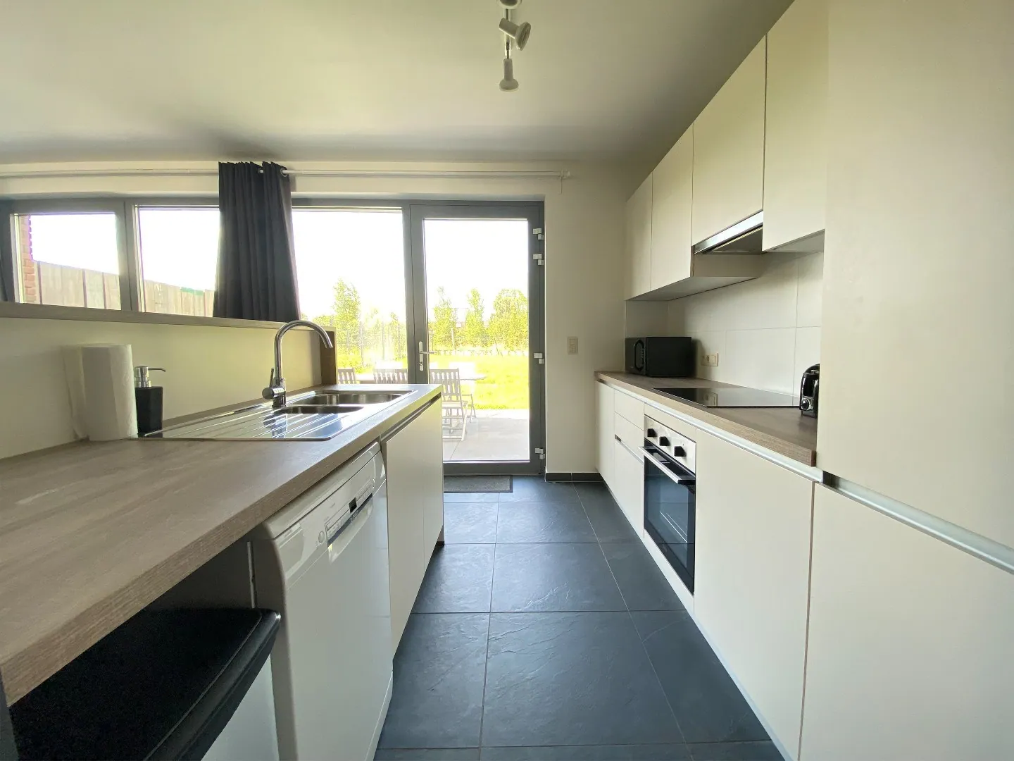 buanderie, cuisine équipée ouverte sur le séjour (frigo, four, micro-onde, taques électrique, hotte, évier, grille pain, machine à café,…),