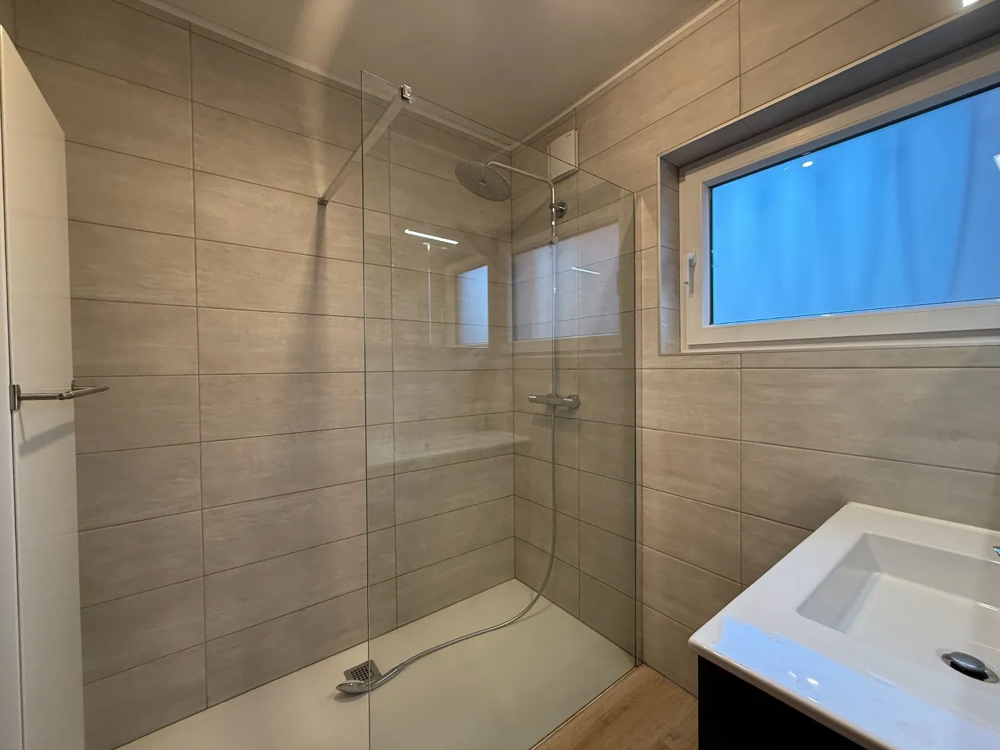 Le couloir mène à une chambre donnant sur le jardin, un wc séparé et une salle de douche avec meuble lavabo simple vasque et armoire de toilette. Depuis ce couloir, vous avez également un accès direct au garage et à la cave. Enfin, une porte au fond du couloir s’ouvre sur le jardin, idéal pour profiter des beaux jours.