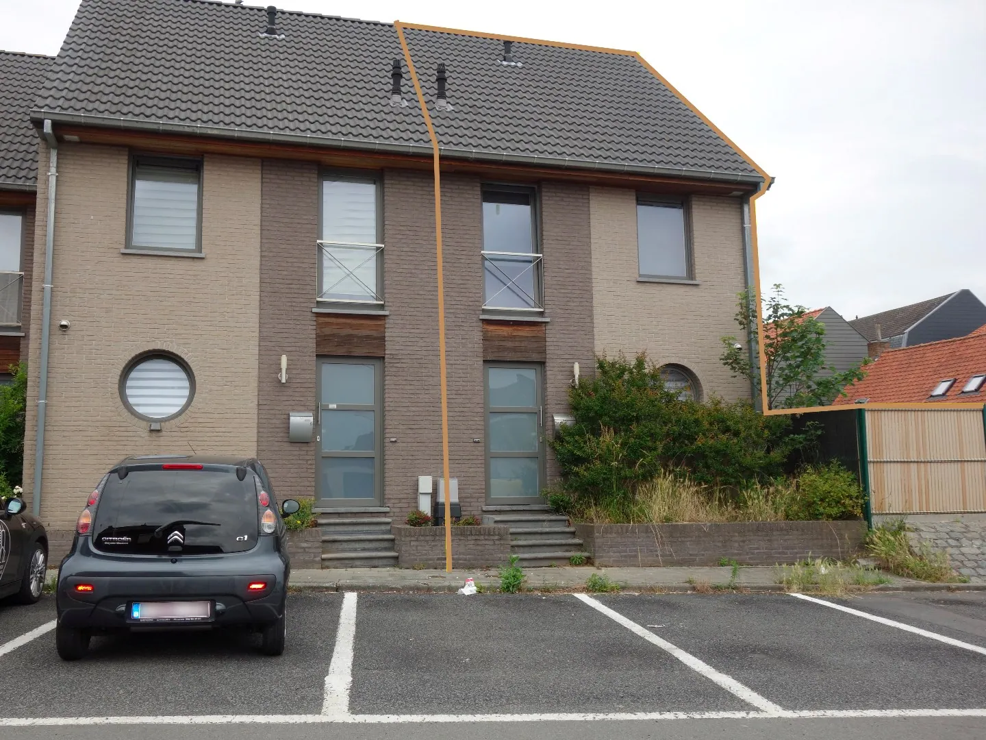 À l'extérieur, une terrasse en pierre bleue de 15 m² vous permettra de profiter d’un jardin clos, idéalement aménagé pour des moments de détente. Le garage, situé à proximité, peut accueillir une voiture et des emplacements de parking sont également disponibles devant la maison.
